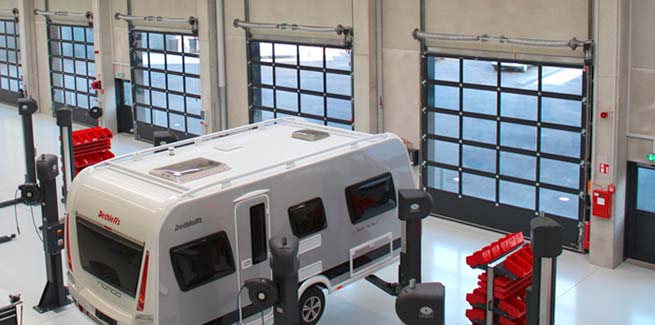 - Die Torgrößen können unter Berücksichtigung der Maximalwerte von 8 x 6 m und sämtlichen zur Verfügung stehenden Führungsschienen- und Antriebssystemen frei gewählt werden.